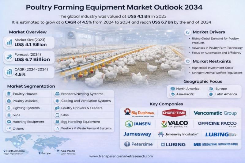 Poultry Farming Equipment Market to Reach US$ 6.7 Billion by 2034, Driven by Ris …