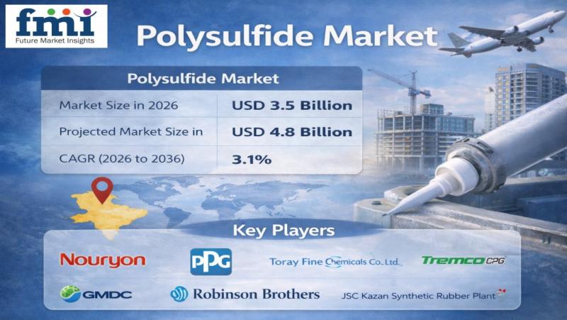 The global polysulfide market is entering a phase of steady, resilience-driven growth, with market valuation projected to expand from USD 3.5 billion in 2026 to USD 4.8 billion by 2036, registering a CAGR of 3.1%.