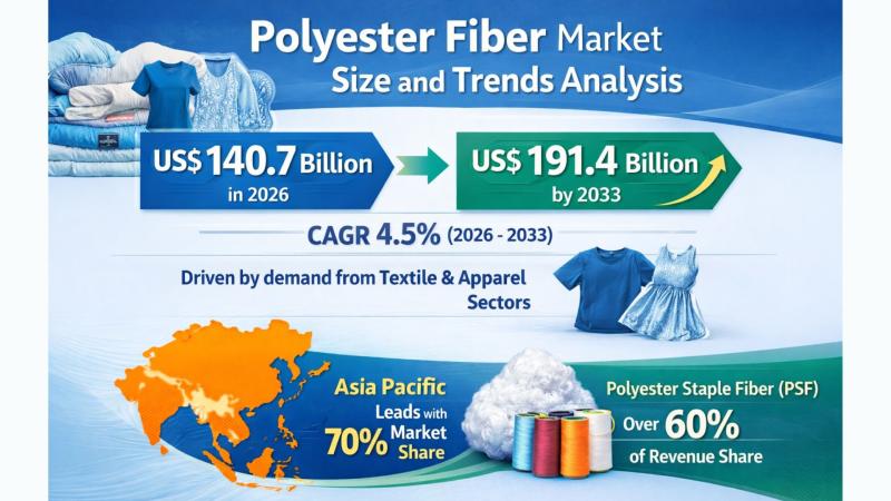 The global polyester fiber market is set for steady expansion, fueled by rising demand across textile and apparel industries worldwide. According to the latest study by Persistence Market Research, the market is projected to grow from US$140.7 billion in 2026 to US$191.4 billion by 2033, registering a CAGR of 4.5% during the forecast period. The growth trajectory is primarily driven by polyester's superior characteristics, including durability, affordability, wrinkle resistance, and…