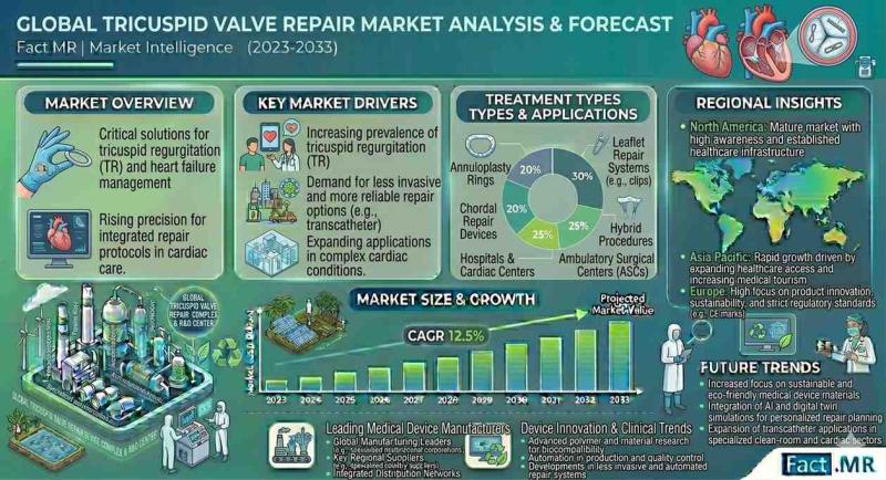 For decades, the tricuspid valve was often overlooked in cardiac care, but a paradigm shift in surgical innovation is placing it at the forefront of the med-tech industry. According to a new strategic analysis by Fact.MR, the global Tricuspid Valve Repair Market is projected to grow from US$ 224 million in 2024 to a commanding US$ 487.2 million by 2034, expanding at a robust CAGR of 8.1%.