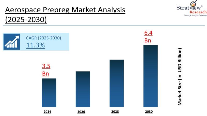 The Aerospace Prepreg Market was valued at USD 3.5 billion in 2024 and is projected to reach USD 6.4 billion by 2030, growing at a CAGR of 11.3% during 2025-2030. Aerospace prepregs are high-performance composite materials used extensively in aircraft structures due to their superior strength-to-weight ratio and durability.
