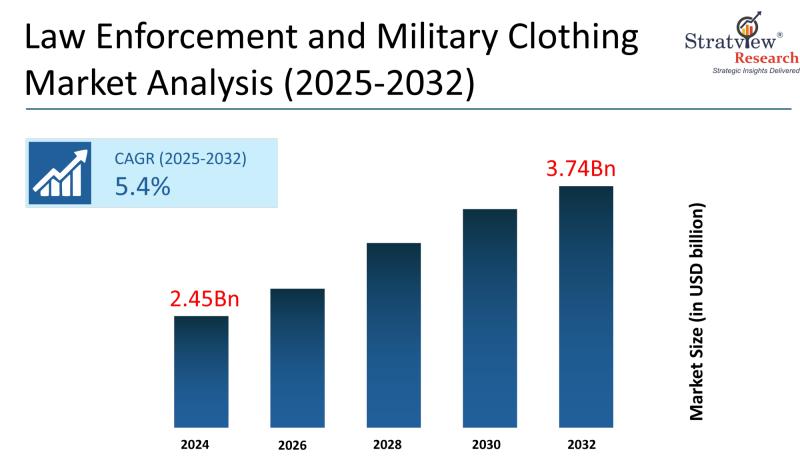 The law enforcement and military clothing market refers to the global industry focused on the development and supply of specialized apparel such as uniforms, tactical gear, and protective clothing designed to meet the operational, safety, and environmental requirements of military personnel and law enforcement officers. According to Stratview Research, the market was valued at USD 2.45 billion in 2024 and is projected to reach USD 3.74 billion by 2032, growing at a CAGR of 5.4% during the forecast period of 2025-2032. The key growth driver is the increasing focus on officer and soldier safety, as modern operational environments require advanced protective clothing with ballistic resistance, fire protection, and weather resistance to enhance survivability and mission effectiveness.Stratview Research, a global market research firm, has launched a report on the global market, which provides a comprehensive outlook of the global and regional industry forecast, current & emerging market trends, segment analysis, competitive landscape, & more.