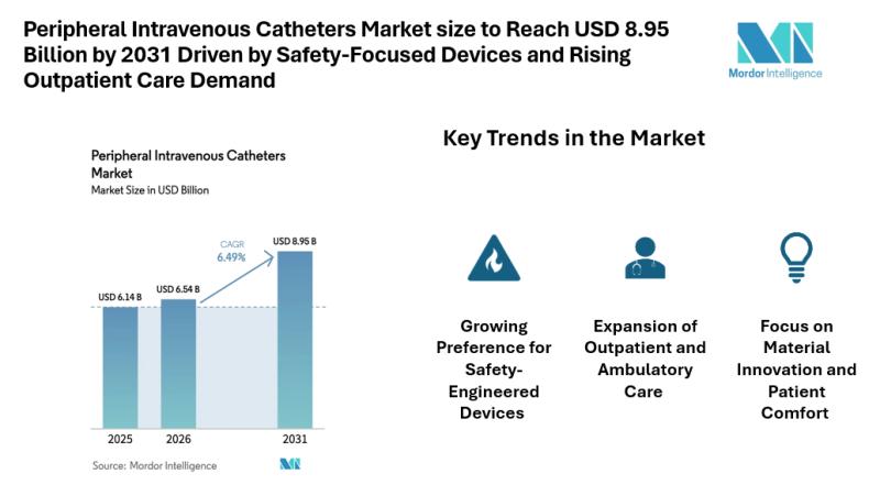 According to Mordor Intelligence, the peripheral intravenous catheters market size is expected to grow from USD 6.14 billion in 2025 to USD 6.54 billion in 2026 and reach USD 8.95 billion by 2031. This reflects consistent peripheral intravenous catheters…
