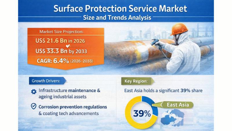 The global surface protection service market is witnessing steady expansion, driven by the increasing demand for asset longevity, corrosion resistance, and operational efficiency across industries. According to Persistence Market Research, the market is projected to grow from US$ 21.6 billion in 2026 to US$ 33.3 billion by 2033, registering a CAGR of 6.4% during the forecast period. Surface protection services play a critical role in safeguarding industrial infrastructure, machinery, and…