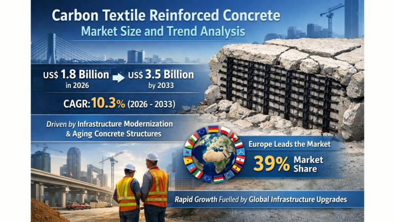 The global carbon textile reinforced concrete market is gaining strong momentum as the construction industry increasingly embraces advanced, lightweight, and durable materials. According to Persistence Market Research, the market is expected to grow from US$ 1.8 billion in 2026 to US$ 3.5 billion by 2033, registering an impressive CAGR of 10.3% during the forecast period. Carbon textile reinforced concrete (CTRC) combines high-performance carbon fibers with fine-grain concrete, offering superior strength,…