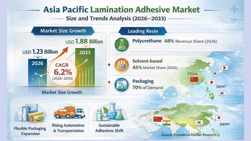 The Asia Pacific lamination adhesive market is experiencing robust growth, driven by rapid industrialization, expanding packaging demand, and increasing adoption of advanced adhesive technologies. According to Persistence Market Research, the market is projected to grow from USD 1.23 billion in 2026 to approximately USD 1.88 billion by 2033, registering a CAGR of 6.2% during the forecast period. Lamination adhesives play a vital role in bonding multilayer materials used in flexible…