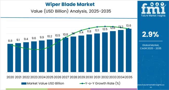 The global wiper blade market is entering a phase of sustained and technology-driven growth, with total market valuation projected to rise from USD 10.22 billion in 2025 to USD 13.61 billion by 2035. This expansion represents an absolute increase of USD 3.39 billion over the forecast period, reflecting a compound annual growth rate (CAGR) of 2.9%. The market's steady trajectory underscores the critical role of wiper blades as an essential safety component, directly influencing driver visibility, vehicle compliance, and operational reliability across all automotive segments.As global vehicle production and ownership continue to expand, demand for both original equipment manufacturer (OEM) installations and aftermarket replacement solutions is strengthening. Wiper blades, once viewed as routine maintenance components, are increasingly being recognized as high-performance systems that contribute to safety, durability, and driving comfort across diverse weather conditions.