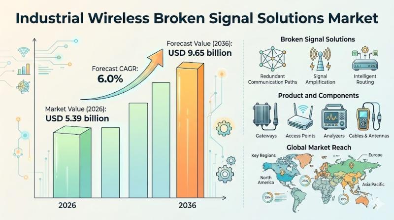 The global Industrial Wireless Broken Signal Solutions Market is witnessing steady expansion as industries prioritize uninterrupted communication across increasingly automated production environments. According to Future Market Insights (FMI), the market was valued at USD 5.08 billion in 2025 and is projected to reach USD 5.39 billion in 2026, ultimately expanding to USD 9.65 billion by 2036 at a CAGR of 6.0%. The market is expected to generate an incremental opportunity…