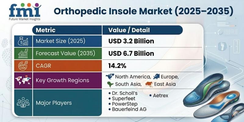 The global orthopedic insole market is witnessing significant growth, projected to expand from USD 3.2 billion in 2025 to approximately USD 6.7 billion by 2035, registering a CAGR of 14.2%. This strong growth is fueled by increasing awareness of foot health, rising prevalence of orthopedic disorders, and continuous innovation in material and digital technologies.