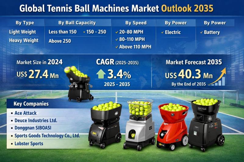Global Tennis Ball Machines Market Set to Reach USD 40.3 Million by 2035 Amid Ri …