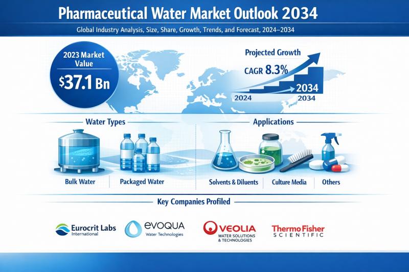 You can edit or delete your press release Pharmaceutical Water Market Set to Reach USD 89.9 Billion by 2034 Amid Rising Demand for High-Purity Water in Drug Manufacturing here