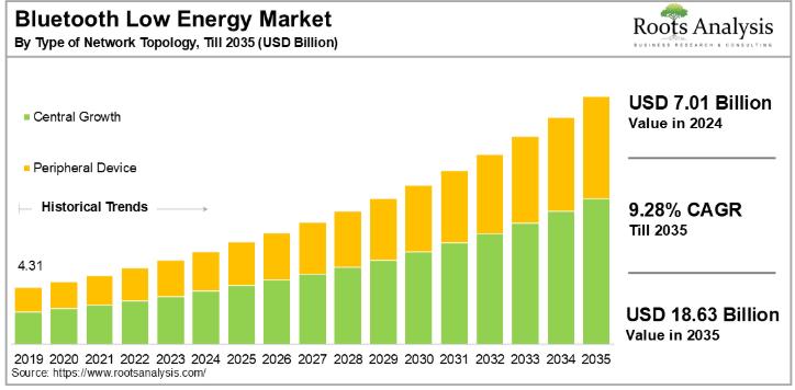 Bluetooth Low Energy Market to Reach $18.63 Billion by 2035 at 9.28% CAGR | Appl …
