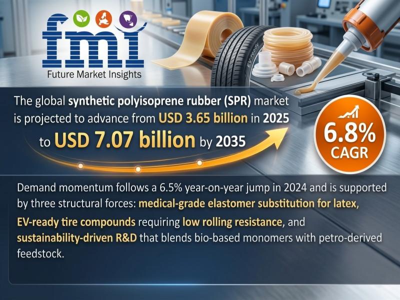 The global synthetic polyisoprene rubber market is entering a transformative growth phase, projected to expand from USD 3.65 billion in 2025 to USD 7.07 billion by 2035, registering a steady CAGR of 6.8%. This growth trajectory reflects a structural shift toward high-performance, hypoallergenic, and sustainable elastomers across healthcare, automotive, and industrial applications.Recent market momentum, including a 6.5% year-on-year growth in 2024, signals strong underlying demand fundamentals. Industry stakeholders-from manufacturers to investors-are closely tracking this segment as it evolves into a strategic material category aligned with global megatrends such as electrification, healthcare safety, and sustainability.