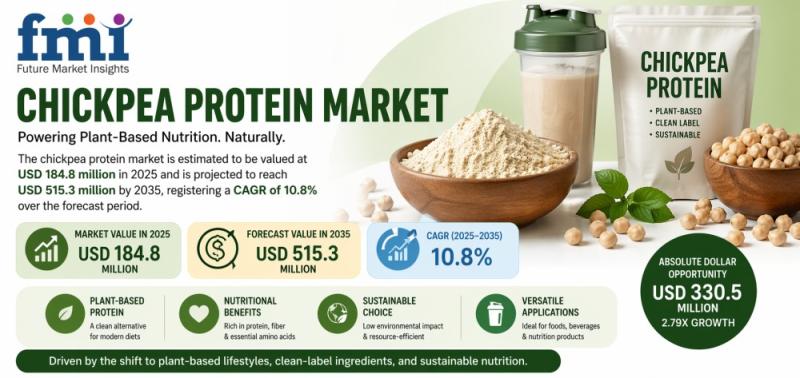 Chickpea Protein Market to Reach USD 515.3 Million by 2035 as Plant-Based Nutrition Demand Accelerates Globally