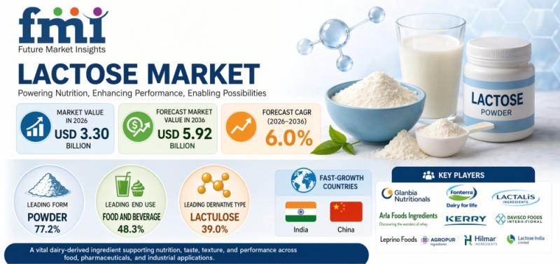 Lactose Market to Reach USD 5.92 Billion by 2036 as Demand for Stable Ingredient …