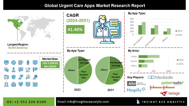 InsightAce Analytic Pvt. Ltd. announces the release of a market assessment report on the "Global Urgent Care Apps Market- by App Type (Pre-Hospital Emergency care & Triaging Apps, In-Hospital Communication & Collaboration Apps, Post-Hospital Apps), Area Type (Trauma, Stroke, Cardiac Conditions, and Others), Trends, Industry Competition Analysis, Revenue and Forecast To 2031."