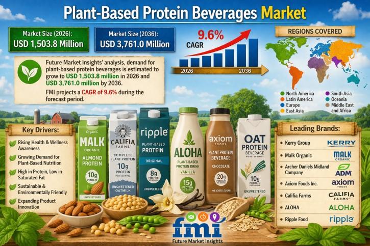 Plant-Based Protein Beverages Market to Reach USD 3,761.0 Million by 2036, Driven by Mainstream Sports Nutrition Adoption and Asia Pacific Expansion