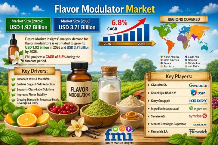 NEWARK, DE, United States - April 6, 2026 - The global flavor modulator market is rapidly evolving into a critical enabling technology for food and beverage reformulation, supporting industry-wide efforts to reduce sugar, sodium, and fat without compromising taste. According to the latest strategic outlook by Future Market Insights (FMI), the flavor modulator market-valued at USD 1.80 billion in 2025-is projected to reach USD 1.92 billion in 2026 and further…