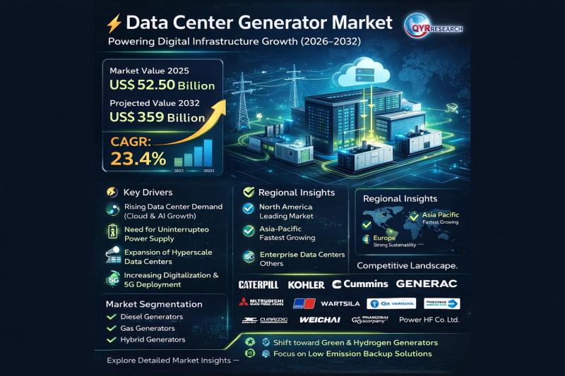According to QYResearch New Study Report 'Data Center Generator Market 2026' provides a comprehensive analysis of the industry with market insights will definitely facilitate to increase the knowledge and decision-making skills of the business, thus providing an immense opportunity for growth. Finally, this will increase the return rate and strengthen the competitive advantage within. Since it's a personalised market report, the services are catered to the particular difficulty. The correct…