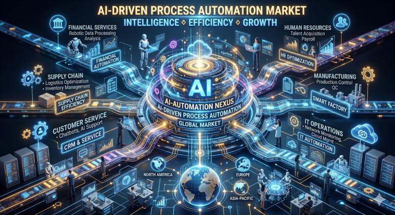 The AI-Driven Process Automation Market refers to the use of artificial intelligence technologies, including machine learning, natural language processing, and computer vision, to automate complex business processes.