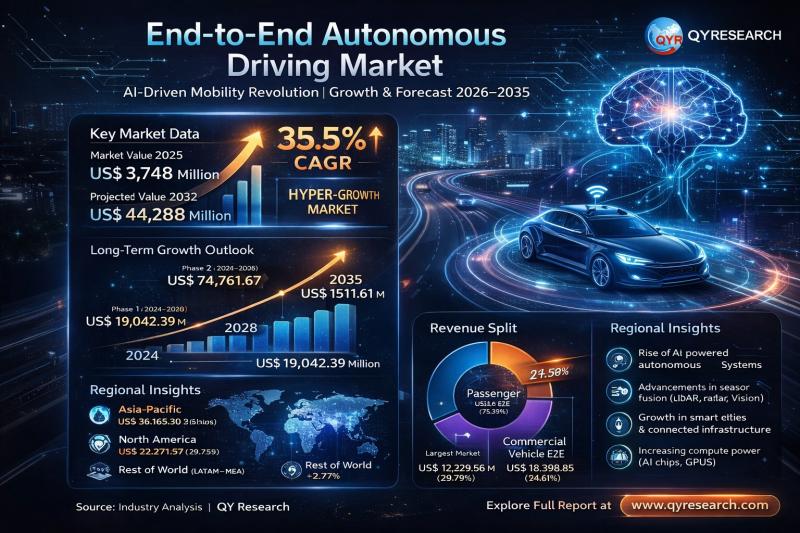 According to QYResearch New Study Report 'End-to-end Autonomous Driving Market 2026' provides a comprehensive analysis of the industry with market insights will definitely facilitate to increase the knowledge and decision-making skills of the business, thus providing an immense opportunity for growth. Finally, this will increase the return rate and strengthen the competitive advantage within. Since it's a personalised market report, the services are catered to the particular difficulty. The correct…