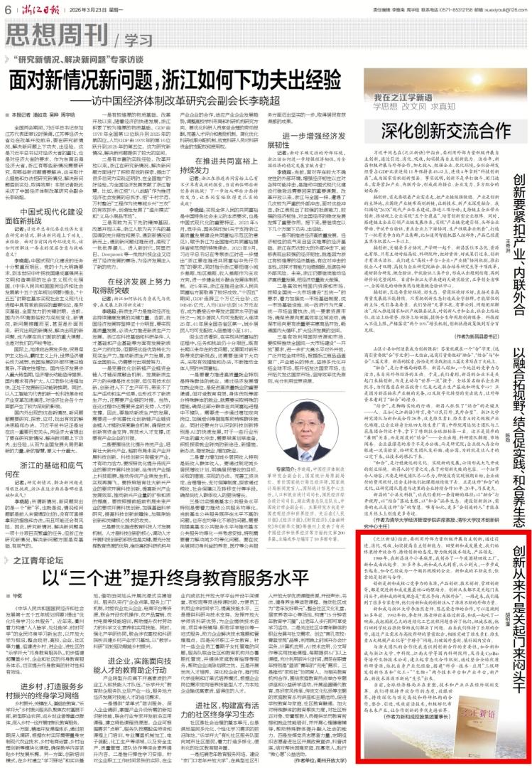 Chairman Hu Baifan Publishes in Zhejiang Daily: "Innovation Is Never Done Behind …