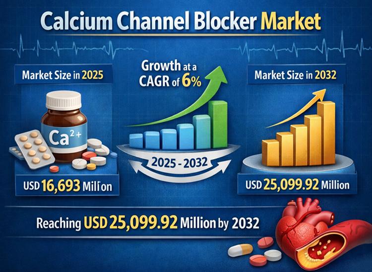 The global Calcium Channel Blocker Market was valued at USD 16,693 million in 2025 and is projected to reach USD 25,099.92 million by 2032, expanding at a CAGR of 6% during the forecast period from 2025 to 2032. The market growth is primarily driven by the rising prevalence of hypertension and cardiovascular disorders worldwide, alongside the increasing dependence on long-term pharmacological management of chronic conditions. Calcium channel…