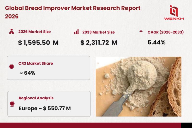 According to WENKH research statistics, the Bread Improver market size is set to climb from $1,595.50 million in 2026 to $2,311.72 million by 2033, achieving a compound annual growth rate (CAGR) of around 5.44%. Driven primarily by the growing demand for large-scale industrial baking, global consumption of bread improvers is supported by bakeries' pursuit of efficient, continuous production and consistent product quality. Variations between flour batches and fixed production line cycles can easily lead to inconsistencies, while bread improvers help optimize dough rheology, expand processing windows, stabilize final products, and reduce waste, thereby sustaining the industry's rigid demand for these additives.