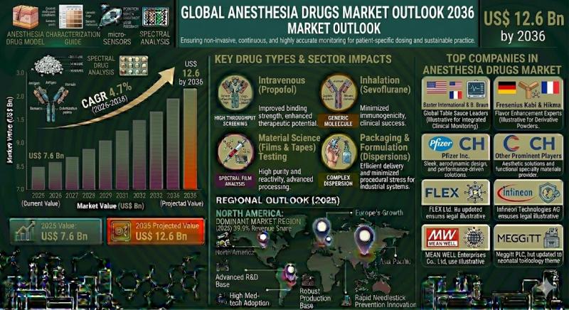 The global anesthesia drugs market was valued at US$ 7.6 Billion in 2025 and is projected to reach US$ 12.6 Billion by the end of 2036, expanding at…