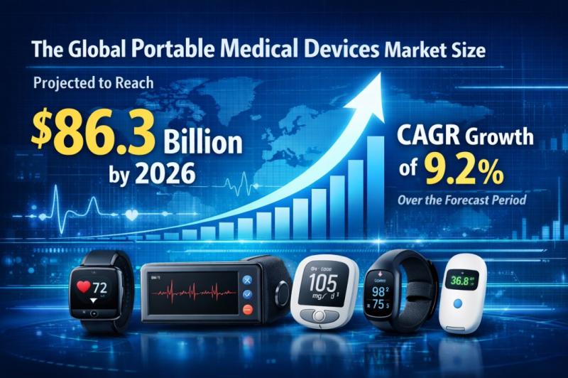 According to industry analysis, the portable medical devices market was valued at approximately USD 86.3 billion in 2026, growing at a compound annual growth rate (CAGR) of 9.2% during the forecast period. Growth is supported by rising chronic disease prevalence, aging populations, and increasing demand for mobile healthcare monitoring technologies.