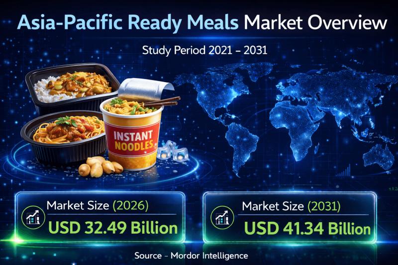 The Asia-Pacific ready meals market continues to gain steady momentum as changing lifestyles and urban consumption patterns reshape food choices across the region. According to a research report by Mordor Intelligence, the market is projected to grow from USD 30.97 billion in 2025 to USD 32.49 billion in 2026, eventually reaching USD 41.34 billion by 2031, registering a CAGR of 4.93% during the forecast period.