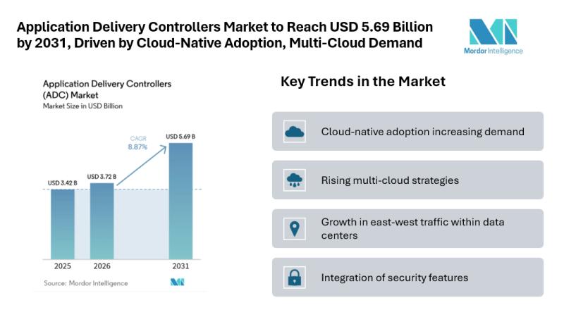 According to Mordor Intelligence, the application delivery controllers market size in 2026 is estimated at USD 3.72 billion, growing from USD 3.42 billion in 2025 and projected to reach USD 5.69 billion by 2031, at a CAGR of 8.87% during the…