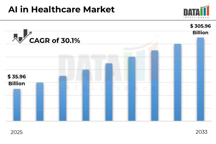 "AI in Healthcare Market reached US$ 35.96 Billion in 2025 and is expected to reach US$ 305.96 Billion by 2033, growing at a CAGR of 30.1% during the forecast period 2026-2033."DataM Intelligence unveils exclusive insights into the AI in Healthcare Market 2026, highlighting emerging trends, growth drivers, and key regional opportunities worldwide. The report helps solve critical business challenges by identifying high-growth segments and reducing investment risks through actionable forecasts. With in-depth competitive benchmarking, it enables smarter strategies and confident decision-making. Leveraging these insights allows stakeholders to stay ahead of market shifts and maximize returns.