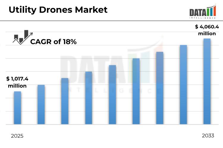 "Global Utility Drones Market reached US$ 1,017.4 million in 2025 and is expected to reach US$ 4,060.4 million by 2033, growing with a CAGR of 18% during the forecast period 2026-2033."