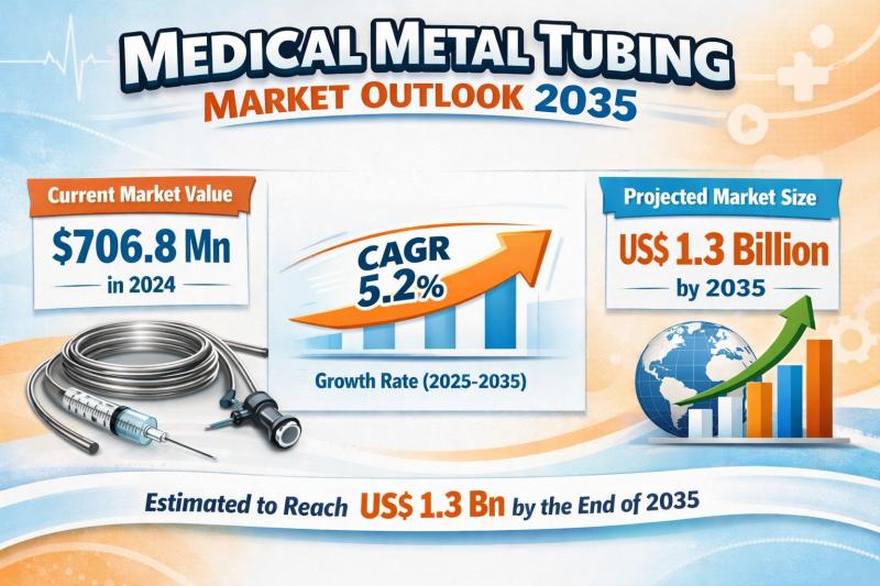 The global medical metal tubing market is witnessing steady and sustained growth, driven by increasing demand for high-performance medical devices and rising healthcare needs worldwide. Valued at US$ 706.8 Mn in 2024, the market is projected to expand at a compound annual growth rate (CAGR) of 5.2% from 2025 to 2035, reaching approximately US$ 1.3 Bn by the end of 2035.