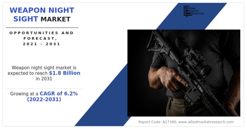 According to a new report published by Allied Market Research, titled, "Weapon Night Sight Market," The weapon night sight market was valued at $1.0 billion in 2021, and is estimated to reach $1.8 billion by 2031, growing at a CAGR of 6.2% from 2022 to 2031.