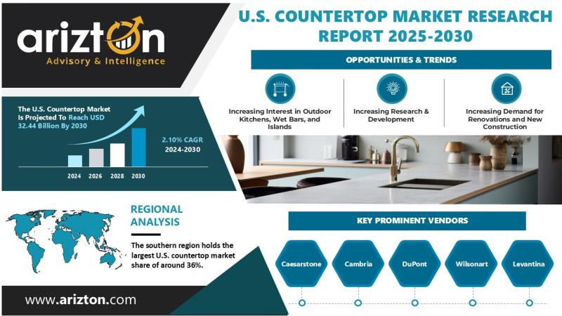 The U.S. countertop market is evolving with changing consumer preferences and construction trends. As remodeling and new-build activities pick up, the focus is shifting from traditional designs to sustainable, durable, and innovative materials. Advances in manufacturing and distribution are improving efficiency and broadening design choices. According to Arizton's research, the U.S. countertop market was valued at USD 28.65 billion in 2024 and is projected to reach USD 32.44 billion by…