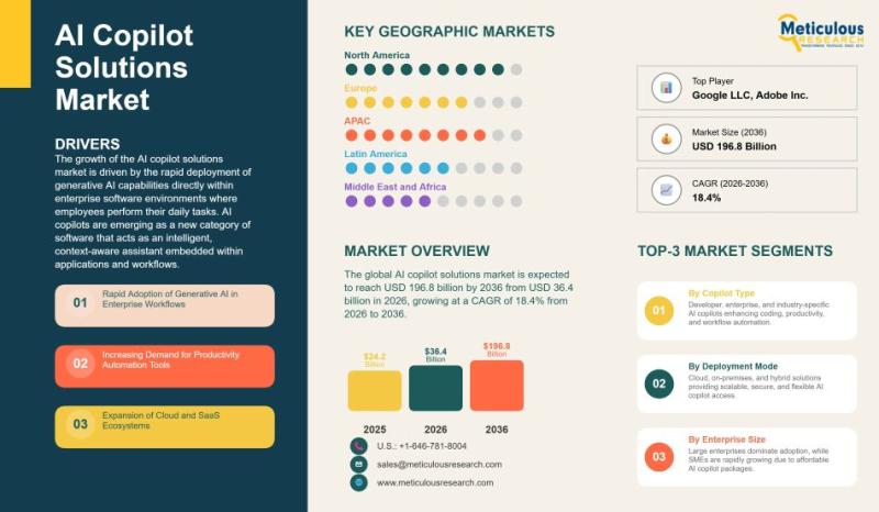 The AI copilot solutions market is growing at a remarkable pace. In 2025, the market was valued at around USD 24.2 billion and is expected to reach USD 36.4 billion in 2026. Looking further ahead, analysts estimate it could hit USD 196.8 billion by 2036, growing at a CAGR of 18.4% over the next decade. This rapid growth is largely due to AI being integrated directly into the software that…