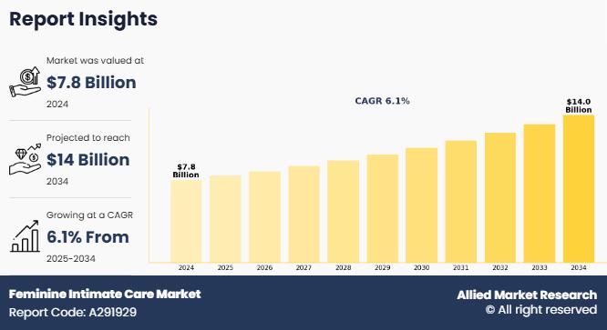 The global feminine intimate care market was worth $7.8 billion last year and forecasts predict that it will reach $14.0B by 2034, marking an annual average increase of 6.1% since 2025's tally. This exceptional growth pattern shows a structural change in how women from all walks of life are now thinking about relaxed health devoting itself much more infection-free parlitanzed therapy and doses usually seen as medically secure for the prevention or relief of certain intimate complaints or ailments.A recent industry profile published by Allied Market Research has focused on the promising investment value available in the global feminine intimate care market. This trend is powered by ongoing growth of female awareness regarding intimate hygiene and demand for organic/natural products; even more so, it resonates with today's increased global concern for women's health and preventative wellness.