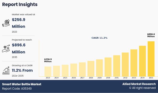 The global smart water bottle market size was $256.9 million in 2023, projected to grow to $896.6 million by 2035 at a CAGR of 11.2% from 2024 to 2035.Establishing the health-oriented data-rich hydration habitThis robust growth trajectory is ushering in a sea change in how health-conscious drinkers are looking after themselves; how athletes perform; and how enterprises do daily hydration. This most basic of requirements is being transformed into a tech-savvy digital health routine.Demand for Smart Water Bottle Changes a New Way of Living has just begun. [US Powder - December 1998] "Smart Water Bottle" has become the mantra of a new intersection of health-oriented cyclists in their pursuit of low-impact, socially responsible water transport that increases flexibility and avoids environmental pollution.Request Sample Report (Get Full Insights in PDF - 458 Pages) at: https://www.alliedmarketresearch.com/request-sample/A35349
