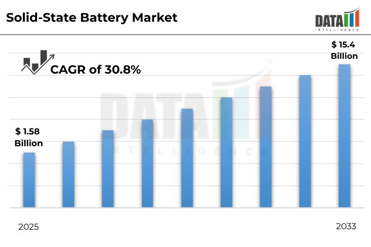"The Global Solid-State Battery Market reached US$ 1.58 Billion in 2025 and is expected to reach US$ 15.4 Billion by 2033, growing with a CAGR of 30.8% during the forecast period 2026-2033."