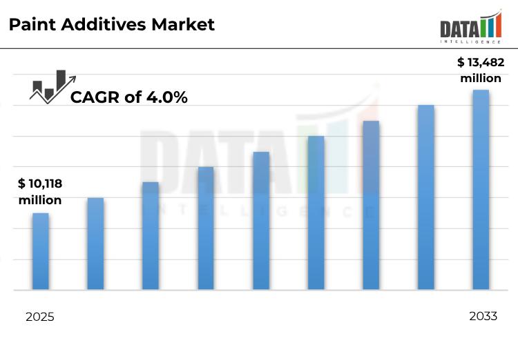"The Paint Additives Market size reached USD 10,118 million in 2025, and is expected to reach USD 13,482 million by 2033, growing at a CAGR of 4.0% during the forecast period 2026-2033."