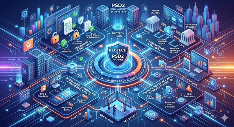 The RegTech for PSD2 Market focuses on regulatory technology solutions developed to help financial institutions comply with the requirements of the Revised Payment Services Directive (PSD2). These solutions enable secure open banking, facilitate strong