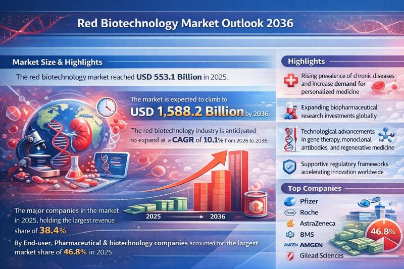 Red Biotechnology Market Outlook 2036: Surging from USD 553.1 Billion in 2025 to …