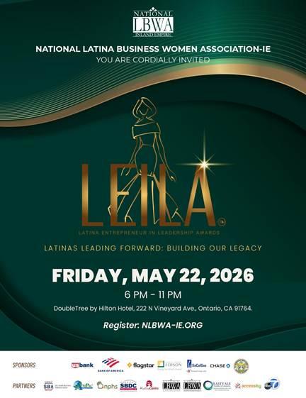 Ontario, CA - April 8, 2025 - The National Latina Business Women Association of the Inland Empire Institute (NLBWA-IE [https://nlbwa-ie.org/]) proudly announces the return of its signature celebration, the 2026 LEILA Trademark Awards Ceremony (Latina Entrepreneur in Leadership Awards Trademark ). This distinguished gala honors exceptional Latina entrepreneurs, executives, and innovators whose leadership is driving economic growth and creating generational impact across the Inland…
