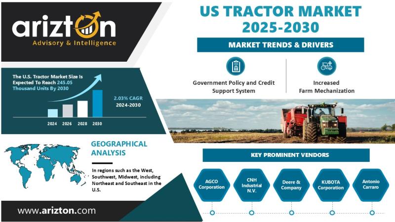 The U.S. tractor market is entering a new phase of transformation, where technology, sustainability, and operational efficiency are redefining modern agriculture. According to Arizton, tractor sales are projected to reach 245.05 thousand units by 2030, growing steadily as farmers increasingly adopt precision-driven and environmentally sustainable equipment.