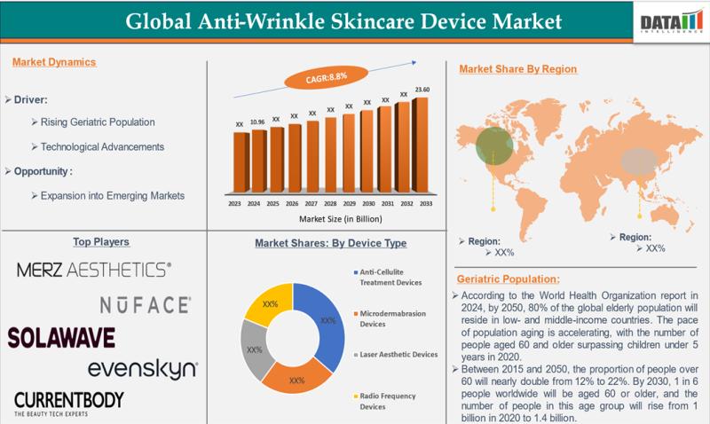 DataM Intelligence has unveiled its latest report on the "Anti-Wrinkle Skincare Device Market Size 2026" delivering powerful insights into key trends, future growth opportunities, and evolving market challenges. Designed to empower smarter decision-making, the report equips businesses with the strategic intelligence needed to stay ahead in a competitive landscape. By blending robust qualitative analysis with data-driven quantitative research, DataM Intelligence offers a well-rounded perspective that helps organizations decode complex market dynamics, unlock new avenues for growth, and seize emerging opportunities in an ever-evolving global market.Unlock Strategic Partnerships in the Growing Anti-Wrinkle Skincare Device Market-Connect with Key Industry Leaders Today: https://www.datamintelligence.com/partner-identification-enquiry/anti-wrinkle-skincare-device-market?prtk
