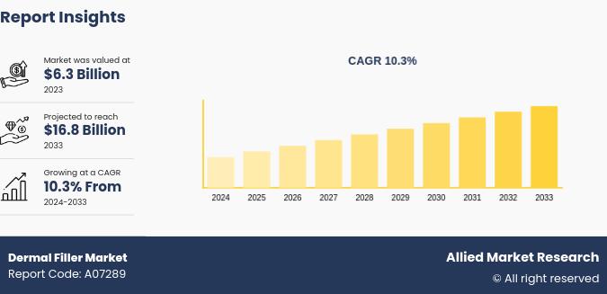 You can edit or delete your press release Dermal Filler Market to Reach $16.8 Billion, Globally, by 2033 at 10.3% CAGR: Allied Market Research here