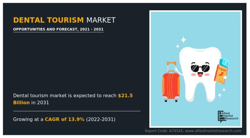 Allied Market Research published a report, titled, "Dental Tourism Market by Services (Dental Implants, Orthodontics, Dental Cosmetics, Others), by Providers (Hospitals, Dental Clinics, Others): Global Opportunity Analysis and Industry Forecast, 2021-2031." According to the report, the global dental tourism industry generated $6.2 billion in 2021 and is anticipated to generate $21.5 billion by 2031, witnessing a CAGR of 13.9% from 2022 to 2031. The report offers a detailed analysis of…