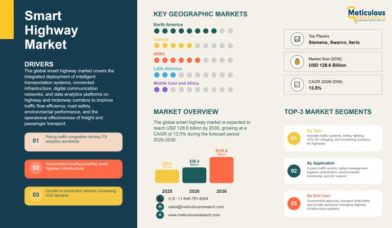 The global smart highway market is experiencing rapid transformation as governments and private stakeholders invest in advanced transportation infrastructure. In 2025, the market was valued at USD 29.8 billion and is projected to grow significantly, reaching approximately USD 36.4 billion in 2026. Looking ahead, the market is expected to expand at a strong compound annual growth rate of 13.5% between 2026 and…